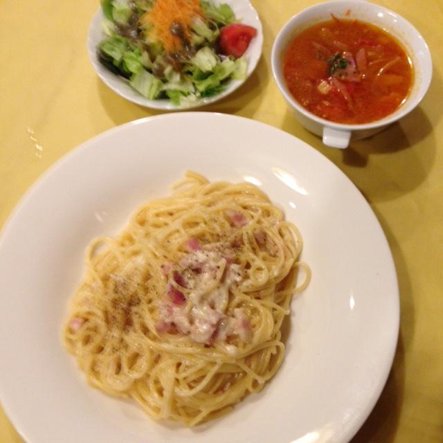 カルボナーラではないとの事でした!ちょっとソース少なくない? (>_<)