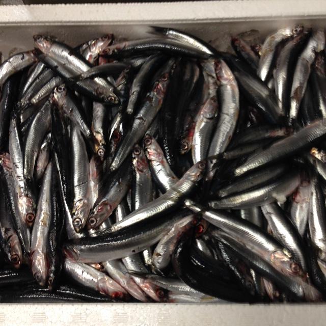 背黒鰯が河岸にやっと入りました!危ない〜アンチョビの仕込みが、冬の間に終わらないところでした!