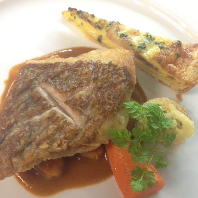 真鯛のソテーとキッシュのアメリケーヌソースです。