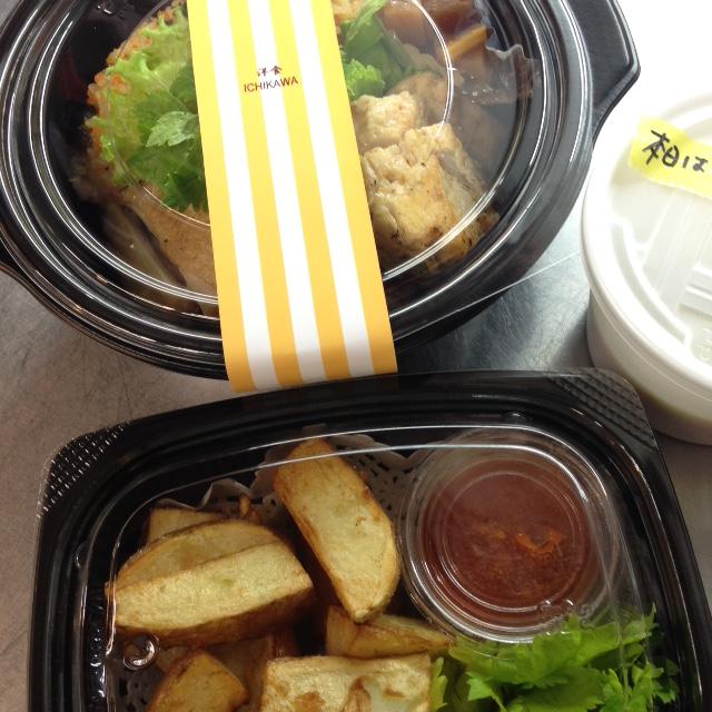 昨日のデリバリーは、海老フライやピラフが出ましたね〜