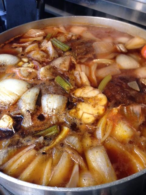 今日は朝からビーフシチューの仕込みです。寸胴の肉で和牛8頭分の部位です。m(__)m