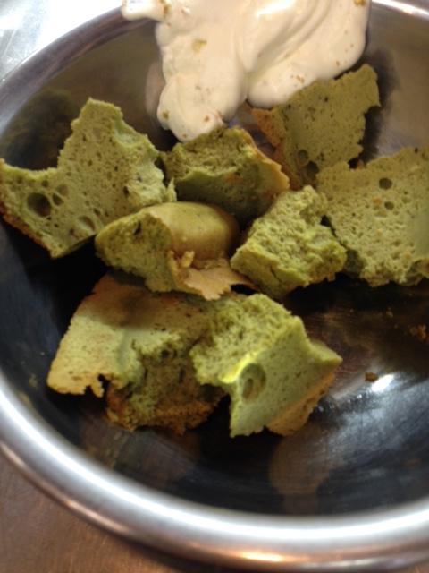 カレー2日目、ランチカレーをメニューに加えたので、和牛ライスカレーはゆっくり仕込めます。と、本日の朝食は抹茶のシフォンのきれっぱし!