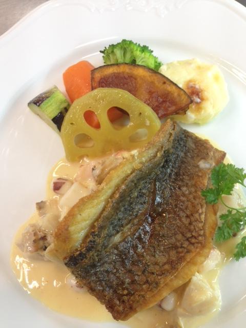 黒鯛の魚介クリームソースです。ワインヴィネガーと、魚の出しで美味です。m(__)m