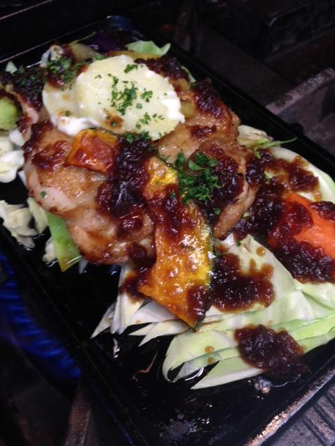 鶏モモ肉の鉄板ステーキです。シャリアピンソースを和風にしました。かなり評判が良いです。m(__)m